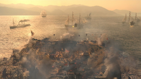 ‘미스터 션샤인’ 1회에서는 각 인물들이 성인이 되기 전 전사(前史)의 성격을 띤 스토리가 진행됐던 상태. 그 중에서 포수 장승구(최무성 분)가 아버지를 잃은 1871년 신미양요 장면은 압도적이라는 반응을 얻었다. 신미양요 전투는 실제로는 물 한 방울 없는 경주에서 가장 많이 공을 들여 촬영됐다. 모든 배와 바다를 CG로 구현했고, 하늘과 노을 진 배경, 구름, 연기까지도 최첨단 시각효과로 완성했던 것. 신미양요 전투 중인 풀샷 뿐만 아니라 공격하러 들어오는 거대한 미군함들, 배가 항해할 때 생기는 주변 물결까지 세밀하게 표현, 시각적인 효과를 극대화시켰다.