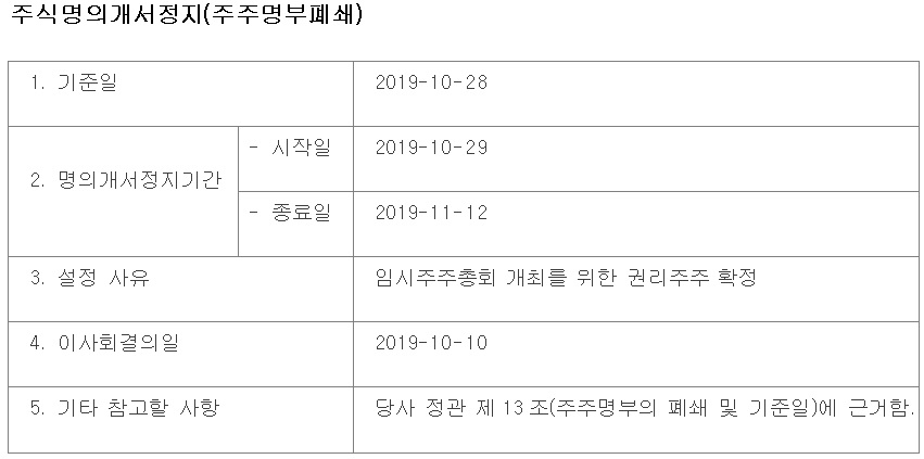 1. 기준일 : 2018.01.12 2. 명의개서정지기간 :
